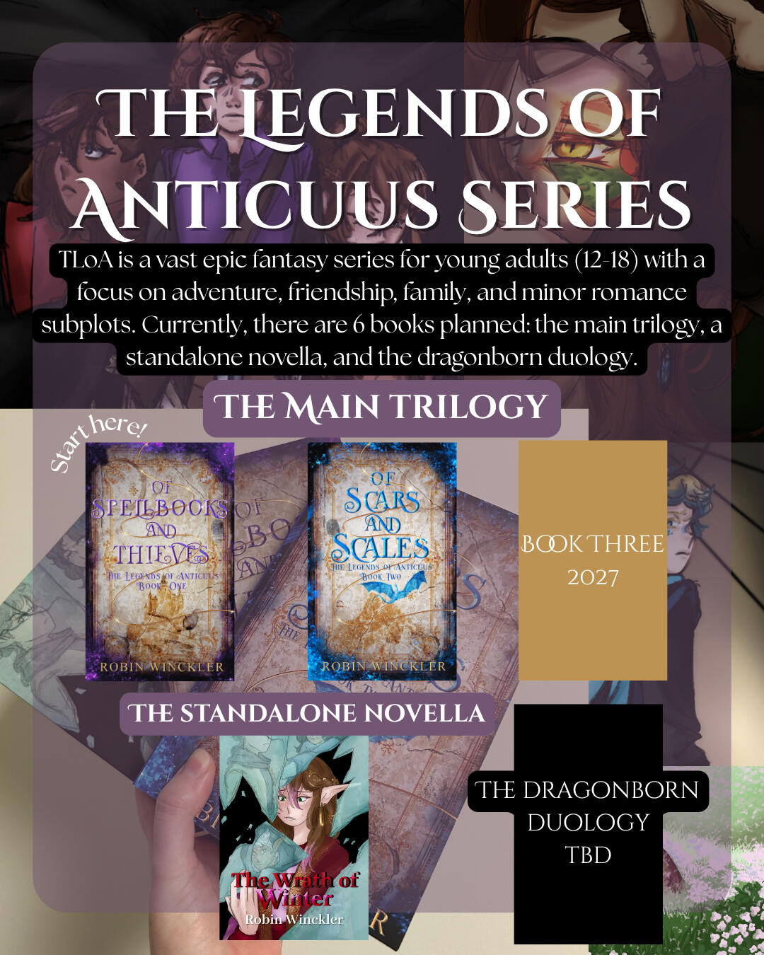 Book One in the Legends of Anticuus seriesMagic is a powerful yet fleeting thing. Those blessed with its presence are given a choice: to do good for their fellow man or to be corrupted. Tobias has neither magic nor the pressure of its power and has lived a peaceful, secluded life because of this. That is, before he stumbles across the key to power: a spellbook. Desperate to unlock its secrets, he accepts it as the promise of something greater.Until the day a thief snatches the book out from under him. In an effort to get it back, Tobias is thrust out into the dangerous world beyond the comfort of his home. Dragons, secrets, and wild magic lurk around every corner he turns, and he has no hope of catching the thief on his own.In order to reclaim his book and safely return home, Tobias must learn to adapt to the shifting world outside. But as he is joined by others who volunteer to aid him in his search for the thief, he realizes there’s more to her than he thinks, and the spellbook is only the beginning.